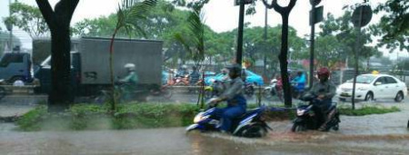 Nah, rupanya disinyalir ada oknum yang memanfaatkan banjir Jakarta untuk ajang iklan produk. Seperti yang ramai diperbincangkan di jagad blogosphere akhir-akhir ini, tentang adanya gambar seekor mio M3 yang sedang menarik beat di tengah besarnya banjir Jakarta. Malah, akhirnya gambar yang ramai bertebaran di dunia maya ini benar-benar dijadikan bahan BC oleh oknum-oknum tertentu.