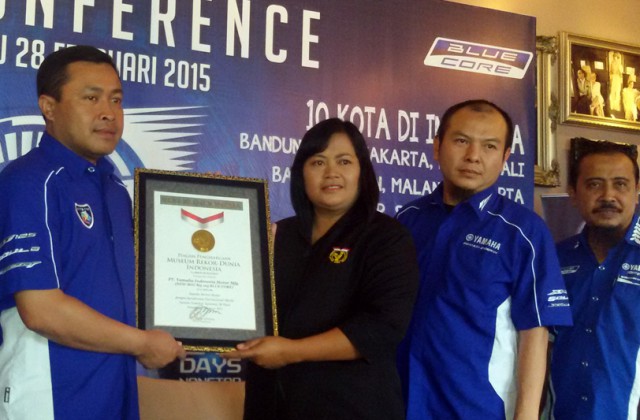 Bro dan sis, kembali unjuk kekuatan mesin dilakukan oleh salah satu produsen sepeda motor kenamaan di negeri ini. Kali ini dilakukan oleh Yamaha. Dengan produk terbarunya, yakni Mio M3 Blue Core mereka melakukan uji ketahanan mesin di 10 kampus berbeda di 10 kota. Penyerahan secara simbolisnya dilakukan di Cafe & Resto Giggle Box, Semarang, Sabtu 26 Februari 2015 kemarin.