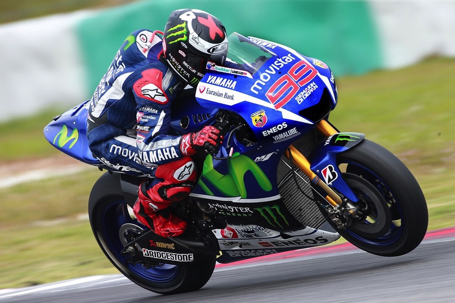 Yup, setelah lampu start padam dengan segera para pebalap membuka gas secepat mungkin.. Aksi start yang unbelievable sukses dipertontonkan Marquez di mana dari posisi 13 dia langsung bisa menyodok di urutan ke lima pada tikungan pertama.. Jika masbro dan sis lihat replay nya.. Weleh wes jian ora genah cara menyalipnya.. Sementara Valentino Rossi yang start dari posisi 8 justru harus melorot dan berada di posisi 10 di belakang Crutchlow dan Bradley Smith.. Di awal lap 2 Lorenzo berhasil menyalip dovisiozo dan berada di posisi pertama..Dan menjelang lap 13 Lorenzo sudah berada sekitar 7 detik di depan.. Sekarang kita kesampingkan pemimpin balapnya.. Lha wong mlayu dewe ra onok kancane.. 😀 Yang justru ramai adalah usaha Rossi untuk merangsek naik dari posisi belakangnya.. membabat Smith, Crutchlow dan kemudian Pedrosa.. Nah,, tak hanya itu.. Iannone, Dovi dan Marquez juga terus berebut posisi ke 2. Namun saat Rossi mendekati rombongan ini tanpa diduga saat lap 18 Marquez kehilangan front end akibat gayanya yang terlalu rebah sehingga menyebabkan dia crash dan tentu saja tak mampu melanjutkan balapan..