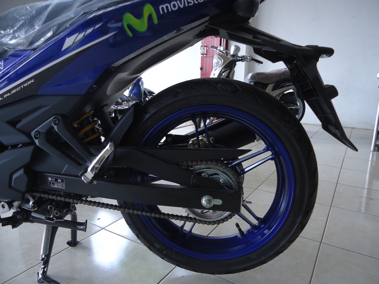 Yes… tentu saja MMz tak menyia-nyiakan kesempatan ini… Keluarkan kamera dan jepret-jepret… Wes pokoke jepret sana jepret sini… MMz akui,,, kelir Movistar Yamaha MotoGP yang dilaburkan terhadap MX King ini sukses mendongkrak tampilannya jauh lebih ganteng ketimbang MX KIng yang regular.. Asli, kalau anda menyemplaknya anda akan terlihat bak Rossi atau Lorenzo.. Sepeda motor yang dibandrol 300 ribu lebih mahal dari versi regular ini sebenarnya mempunyai spesifikasi mesin yang sama dengan versi regularnya.. Namun dengan diferensiasi harga sebesar itu.. Kepuasan akan sesuatu yang special jelas sangat sepadan dengan apa yang anda dapatkan.,..