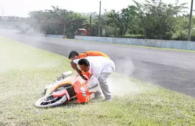 Yup, sungguh menyedihkan masbro… Bagaimana tidak.. Saat selesai balapan biasanya semua pebalap akan mengurangi kecepatan, memelankan laju motornya untuk menyapa para penggemar di tribun penonton.. Hal ini juga yang dilakukan oleh M. Fadli.. Terlebih sebagai pebalap yang keluar sebagai juara 1 di race 2 spontan ia langsung melambaikan tangan untuk menyapa para penonton.. Namun sungguh diluar dugaan.. Baru beberapa detik melambaikan tangan, datanglah pebalap Thailand, Jakkrit Sawangswat, melaju dengan kecepatan tinggi dan langsung menghantam Fadli dari belakang tepat di kaki sebelah kiri…