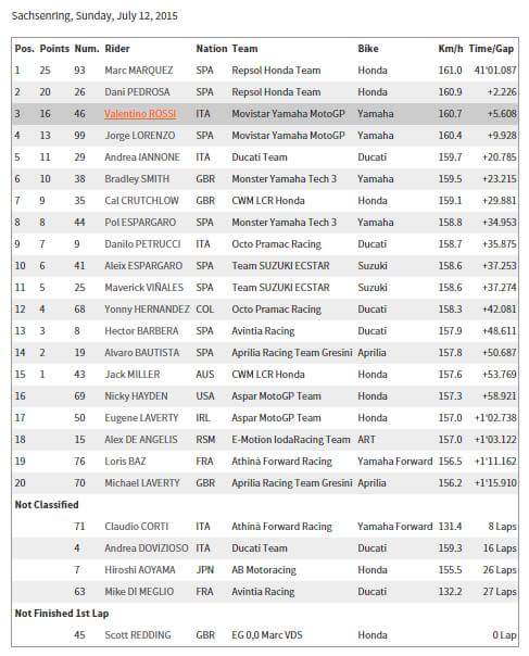 Berikut hasil lengkap motoGP Sachsenring 2015: