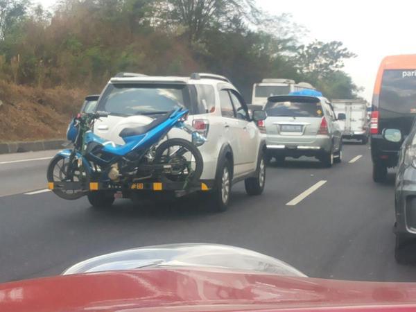Nah, berikut ini ada sebuah foto yang diupload di sebuah grup fb, dimana terpampang sebuah ayago Satria FU yang digendong oleh Rush atau kalau bukan Terios.. Soalnya gak kelihatan jelas simbolnya..