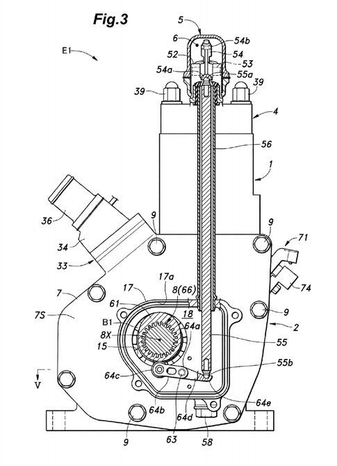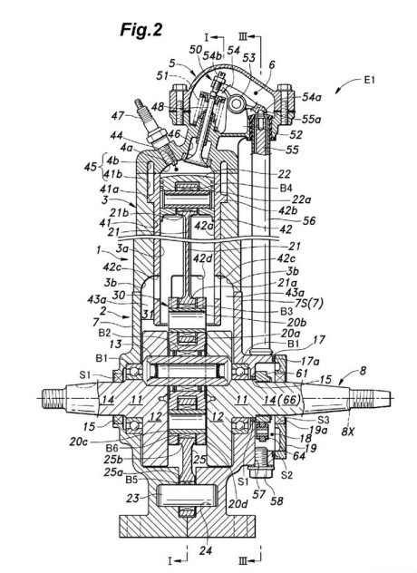 Seperti pada gambar yang terlihat, di sana terpampang beberapa desain calon mesin yang akan digunakan Honda untuk motor 2 tak modernnya.. Bahkan di tag no. 70, 71, 72 dan 74 tergambar bagaimana nantinya sistem pengabut bahan bakar (fig.5) akan ditanamkan..