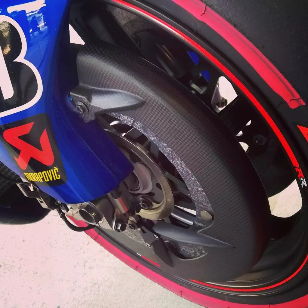 kali ini tim yang dimanajeri Davide Brivio tersebut mengaplikasikan cover disc brake yang terbuat dari serat karbon.