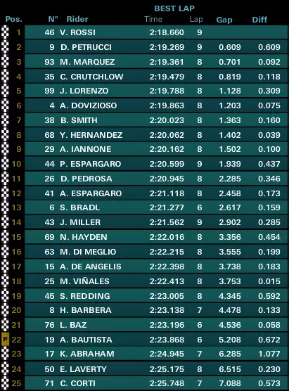 Dan berikut hasil lengkap WUP MotoGP Silverstone 2015.