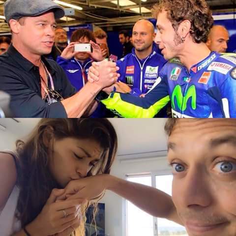 Dan yang kedua adalah Linda Morselli, model sekaligus pacar Valentino Rossi yang ikut menyalami dan mencium tangan Valentino Rossi. Entah apa motivasinya, apa mungkin doi mencium bekas telapak tangan Brad Pitt atau mungkin memang sebuah penghormatan kepada calon suami..