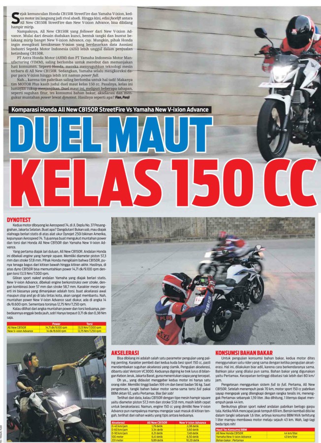 Yup, adu handal Yamaha New Vixion Advance vs New CB150R pun dilakukan oleh M+. Dan hasilnya… New CB150R unggul di semua sisi masbro..