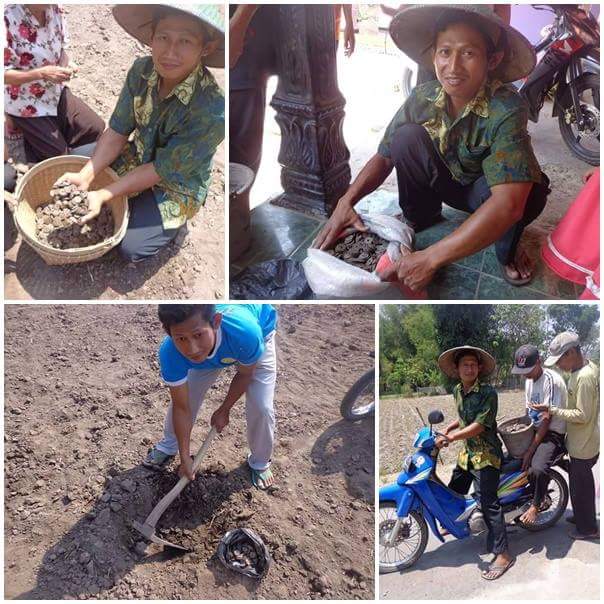 Nah, tanpa sengaja cangkulnya membentur sebuah benda keras sehingga membuat Supriyanto penasaran dan menghentikan aktivitasnya. Dan benar saja masbro.. Benda keras itu adalah uang.. Uang logam berlubang dengan huruf Cina.