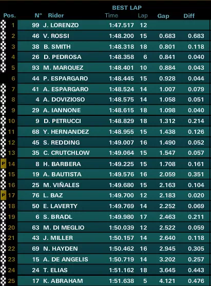 - Hasil FP2 MotoGP Aragon 2015: Jorge Lorenzo Masih Tercepat diikuti Rossi dan Smith..!!!