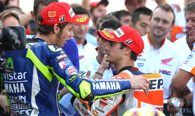 Motomazine.com – Salam safety riding bro dan sis… Tentunya masih kuat ingatan kita akan bagaimana serunya race Aragon kemarin. Yang dipertontonkan oleh Valentino Rossi dan Dani Pedrosa. Valentino Rossi yang akhirnya harus mengakui kecepatan Pedrosa mengatakan bahwa ia telah memainkan semua kartunya, bahkan lebih untuk merebut posisi dua dari Dani Pedrosa.