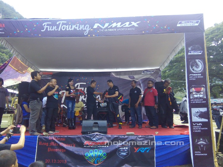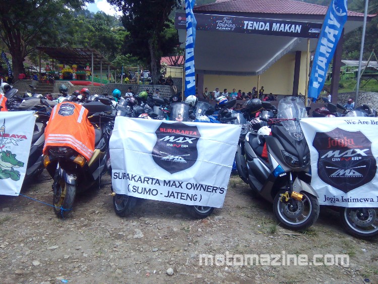 Sesampainya di Telaga Ngebel panitia sudah menyiapkan panggung dan acara penyambutan hangat bagi para rider NMax dari seantero pulau Jawa ini. Pada kesempatan kali ini klub-klub yang hadir diantaranya adalah Surabaya Max Owner (SUMO), Jogja Istimewa Max Owner (JIMO), Surakarta Max Owner (SUMO-Jateng), Malang, dan NMax pusat dari Jakarta.