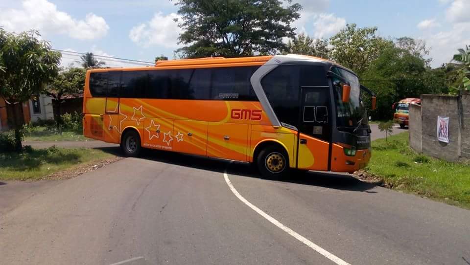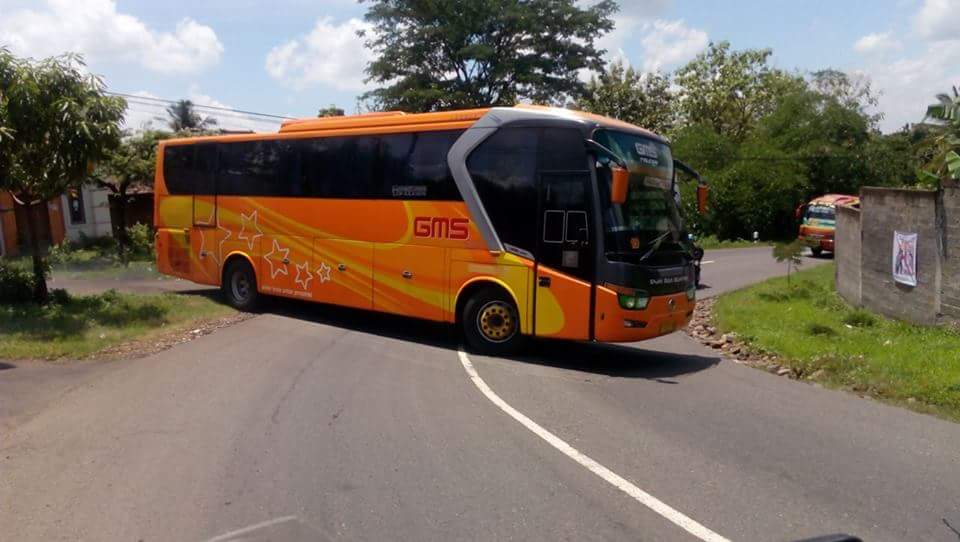 Adalah bro Dhipta yang mengirimkan gambar ini kepada MMz. Bro Dhipta yang sedang berkendara dan hendak melewati jalan ini terpaksa harus berhenti nungguin bus tersebut berbalik arah.