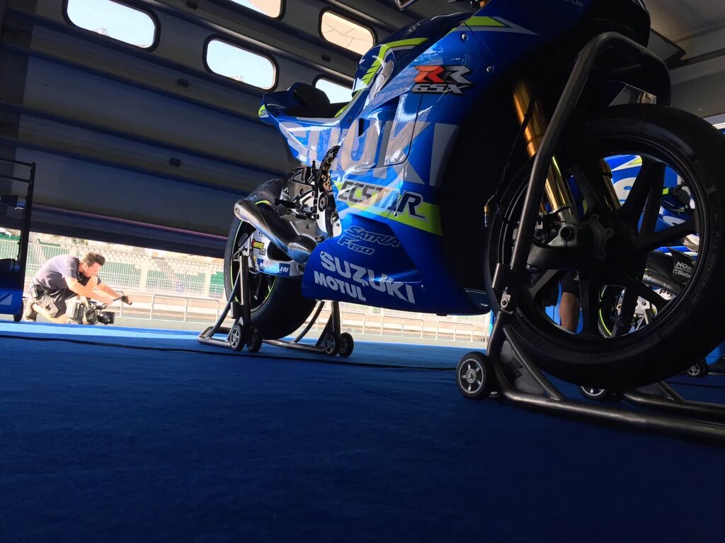 Motomazine.com – salam safety riding bro sis.. Sesi tes pramusim di sirkuit Sepang sudah dimulai pagi ini.. Dan mengawali debut pertamanya di tahun ini duo pebalap Suzuki Ecstar MotoGP Aleix Espargaro dan Maverick Vinales dengan bangga memperkenalkan tunggangan baru mereka GSX-RR dengan livery baru 2016.