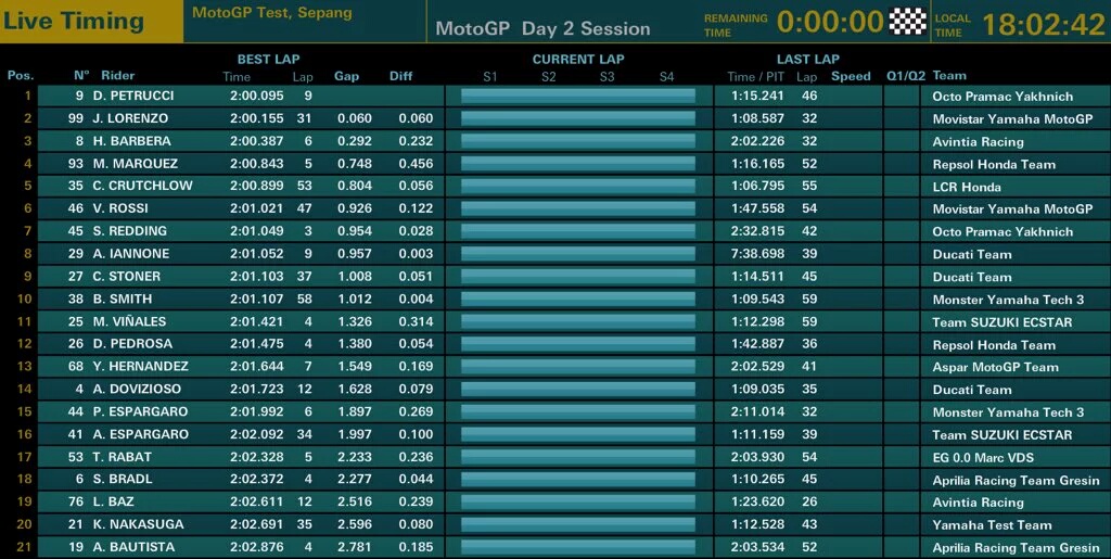 Motomazine.com – salam safety riding bro sis.. Gelaran tes pra musim hari kedua di sirkuit Sepang baru saja selesai dihelat. Dan hasilnya, sungguh diluar dugaan. Sebab pebalap Octo Pramac Ducati, Danilo Petrucci berhasil menjadi pebalap tercepat mengalahkan pebalap-pebalap top lainnya.