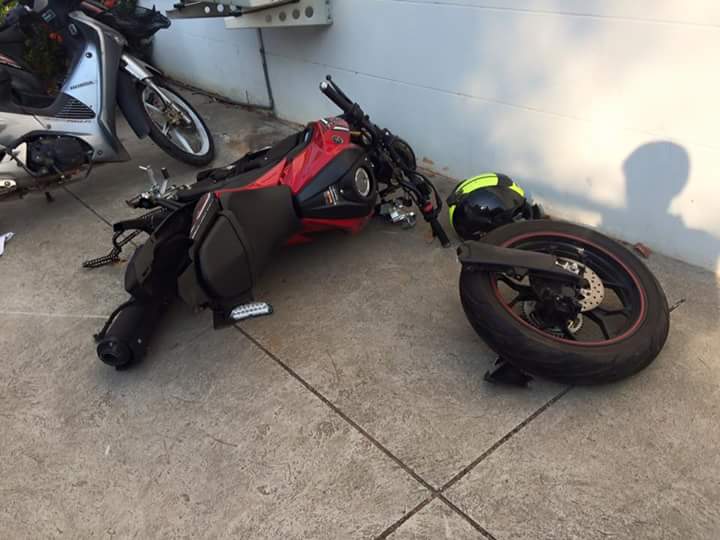 Motomazine.com – salam safety riding bro sis.. Berita ini menyebar cepat dari negeri gajah putih. Penampakan sesosok Yamaha M-Slaz Warna merah yang entah kenapa swingarm banana nan fenomenal itu patah.