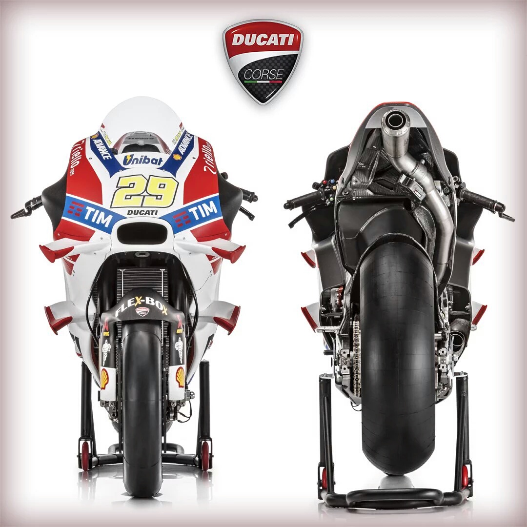 Motomazine.com – salam safety riding bro sis… Akhirnya hari ini, Selasa (23/02) tim merah Ducati merilis kuda besi yang dijadikan peluru mereka untuk berlaga di kancah MotoGP. Masih dengan mengandalkan pebalap Andrea Dovisiozo dan Andrea Iannone, “pesawat” Desmosedici GP16 livery baru akhirnya diperkenalkan kepada khalayak di Borgopanigale Italia.