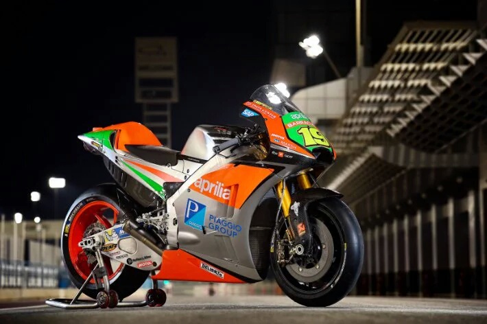 Motomazine.com – salam safety riding bro sis.. Menjelang sesi test pramusim terakhir yang digelar di Qatar mulai hari ini, Rabu (2/02) bertempat di sirkuit yang sama, tim Aprilia akhirnya memperkenalkan livery terbaru mesin RS-GP versi 2016 mereka. Meskipun nihil dengan sponsor namun tim ini terlihat menjunjung tinggi nasionalisme.. Dengan disematkannya garis hijau dan merah di sisi kanan dan kiri fairing bagian bawah jok rider.. Yup, Italiano masbro…