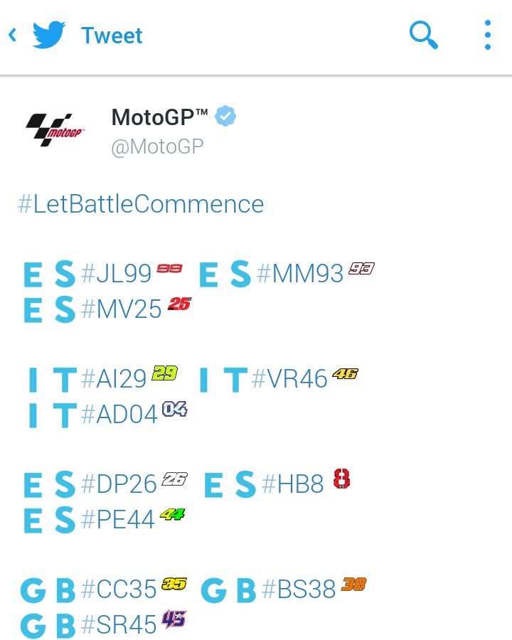 Kalau sudah begini dijamin balapan akan berlangsung seru bro sis.. Trio Spanyol bakal bertarung dengan trio Italia di grup first dan second row.. Jangan sampai ketinggalan.. Balap MotoGP Qatar akan disiarkan live dari Trans 7 mulai pukul 11.00 WIB malam ini… (MMz)
