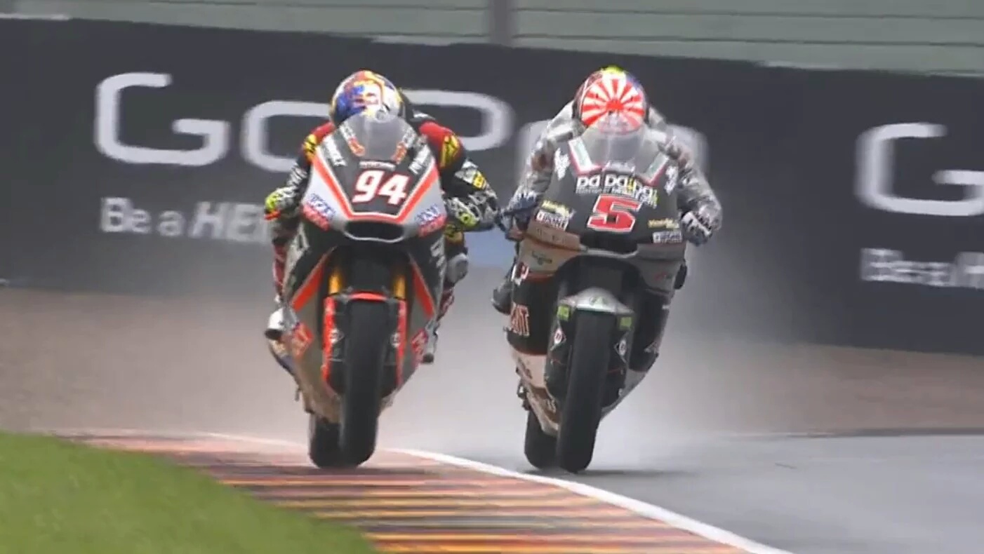 Motomazine.com – Salam safety riding bro sis.. Jalannya balap Moto2 di sirkuit Sachsenring Jerman berlangsung dengan mempertontonkan begitu banyak drama. Balapan yang digelar dengan kondisi hujan yang sudah mengguyur semenjak lampu start dipadamkan nyaris membuat separuh dari pebalap-pebalap Moto2 ini memendam asa dalam-dalam akibat harus slip dan meluncur ke gravel.