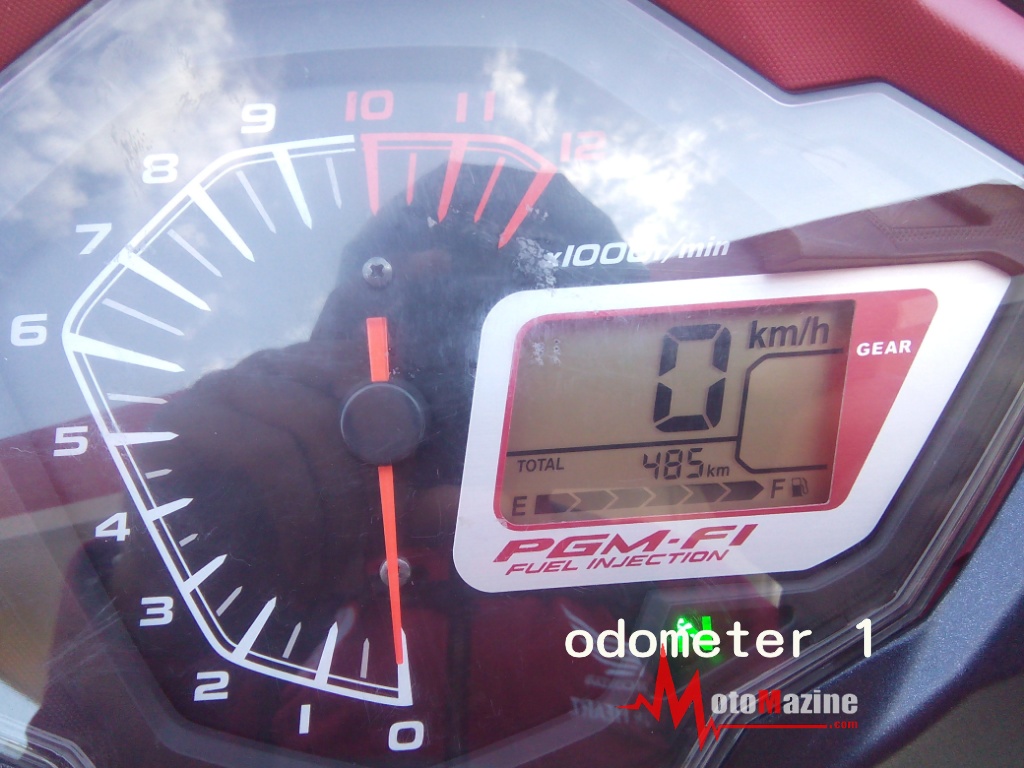 Pagi hari saat berangkat kerja MMz mengisi full tangki Supra GTR150 ini dengan bahan bakar berjenis Pertamax (Ron 92) hingga sedikit meluber ke bibir tangki. Hal ini sengaja MMz lakukan agar saya sendiri dan anda semua pembaca setia benar-benar yakin jika BBM yang dimasukkan memang full, penuh dan tak ada ruang tersisa lagi. Saat itu odometer menunjuk angka 485 km.