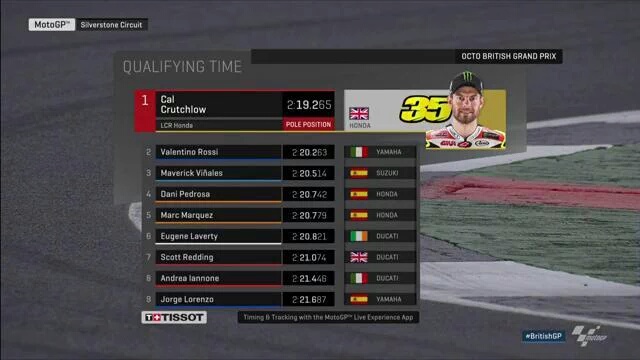 Dan hasilnya, juara MotoGP seri Brno, Cal Crutchlow berhasil meraih pole position disusul Valentino Rossi dan Maverick Vinales. Tiga pabrikan dengan tiga tim berbeda bakal mengawali balap dari tiga posisi terdepan.