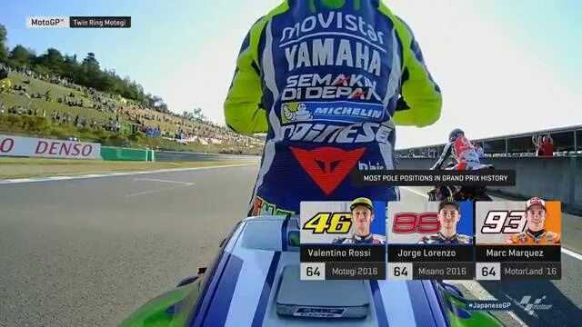 So.. Dengan hasil ini maka Rossi tercatat telah menyamai rekor pole position yang dicetak oleh Marquez dan Lorenzo yakni sebanyak 64 kali pole position.