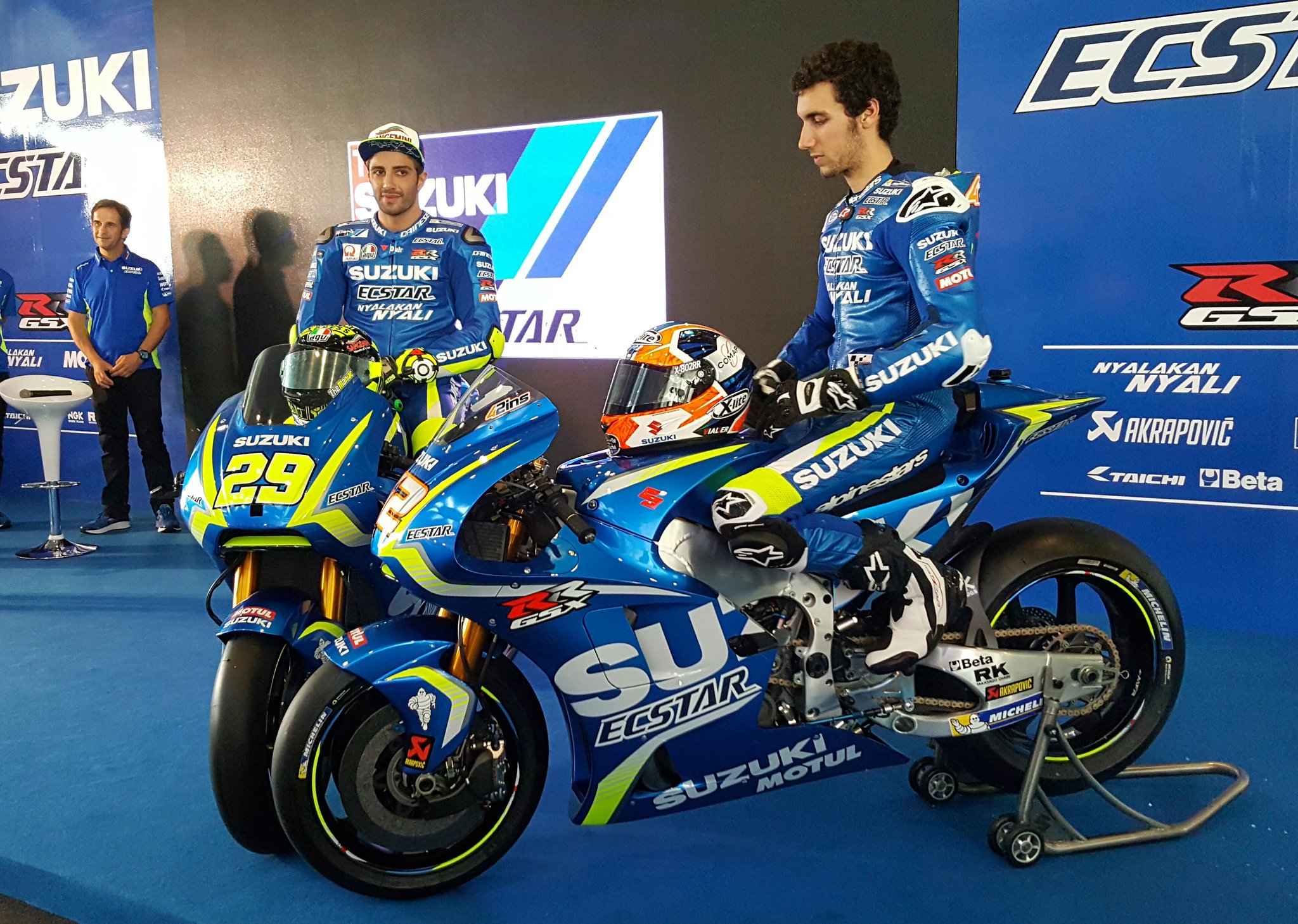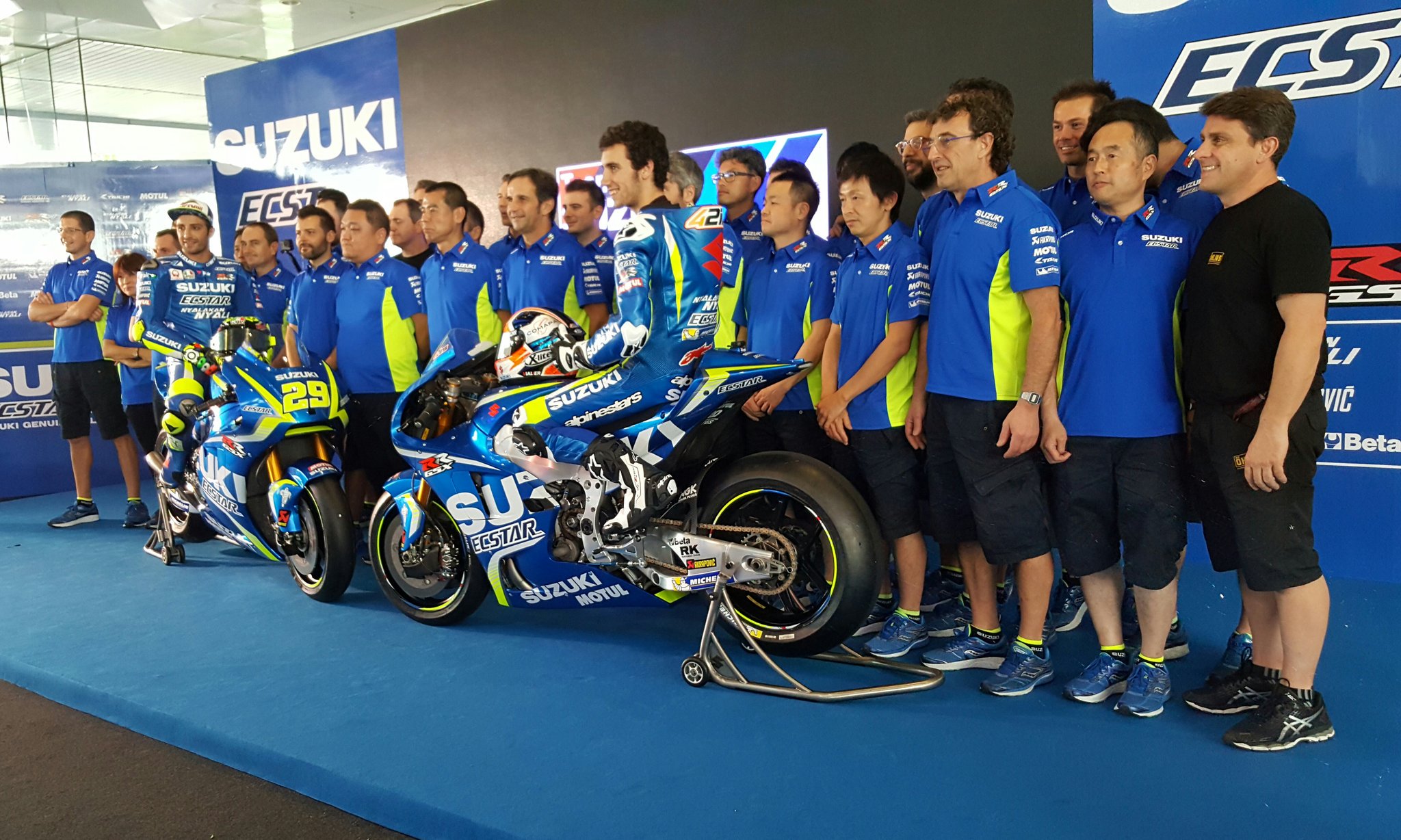 Motomazine.com – Salam safety riding bro sis.. Pasca Yamaha dan Ducati merilis livery yang akan mereka gunakan pada balap musim 2017 nanti, kini giliran Suzuki lewat Andrea Iannone dan Alex Rins yang berkesempatan memamerkan livery resmi tim dan motor GSX-RR 2017 ke hadapan publik.
