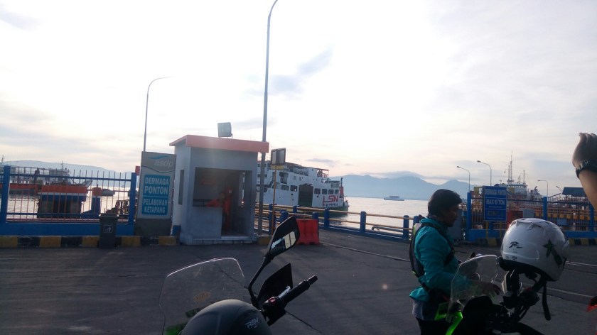 Yup, check out dari hotel Mirah Banyuwangi, rombongan XVenture Ride langsung melipir menuju ke pelabuhan Ketapang Banyuwangi untuk menyeberang ke Bali. Tak perlu waktu lama untuk sampai ke pelabuhan, sebab lokasi hotel yang dipilih panitia dan pihak Kawasaki memang tak jauh dari pelabuhan. Sebuah ide cemerlang. Kenapa? Sebab menyeberang di pag ihari cenderung lebih aman karena ombak tak terlalu besar.