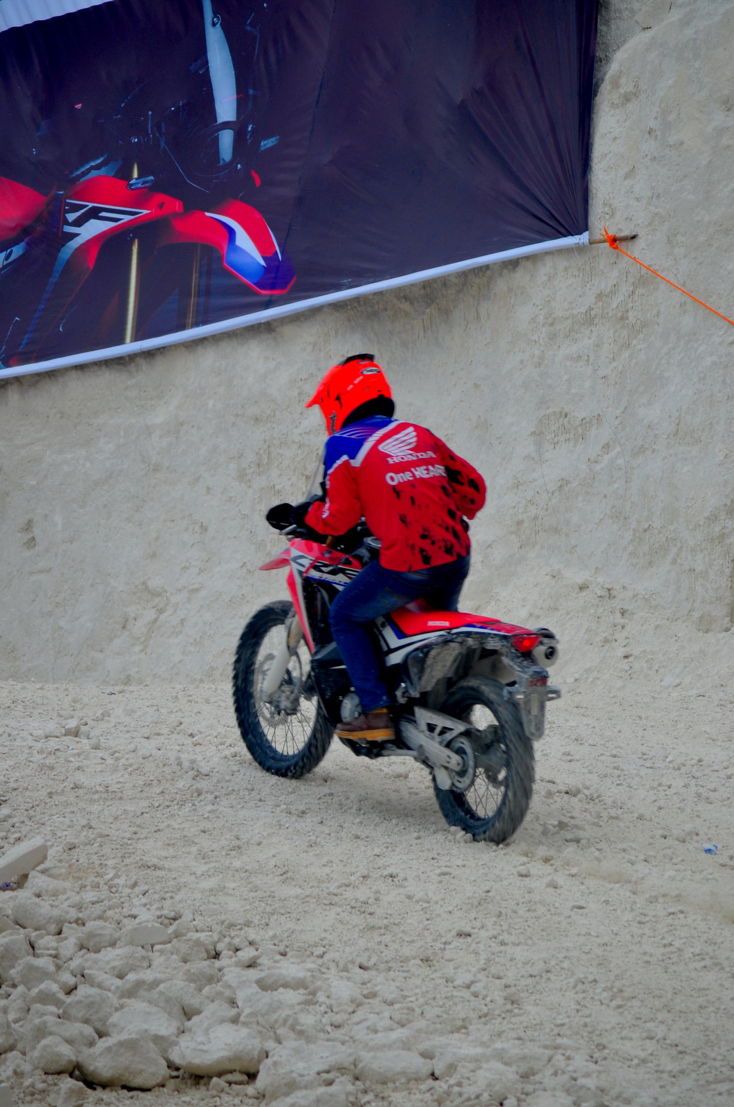 Lanjut, acara test ride dibagi menjadi beberapa sesi diantaranya bagi blogger, media serta perwakilan community yang ingin mencoba secara langsung keganasan Honda CRF250Rally. Dan entah mendapat angin dari mana, Motomazine didaulat menjadi tester pertama dari Rukun Blogger Jatimotoblog yang diberi kesempatan berkencan (singkat) dengan jagoan terbaru pabrikan sayap mengepak ini.