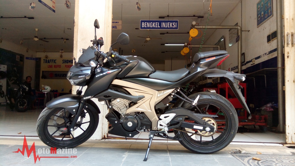 Motomazine.com – Salam safety riding bro sis… Mendapatkan kabar bahwa sesosok Suzuki GSX-S150 telah berdiri gagah di dealer SMG Ponorogo, membuat MMz tak kuasa membendung rasa curiousity untuk segera melipir dan menyaksikannya langsung dengan mata kepala ini sendiri. Dibekali gambaran kurang meyakinkan di foto-foto yang telah bertebaran di dunia maya, sejatinya MMz telah menyiapkan mental dan keyakinan, menyediakan cadangan detak cadangan apabila terkaget-kaget saat menyaksikannya secara langsung. Sedikit lebay memang, tapi yoweslah gak papa 😀