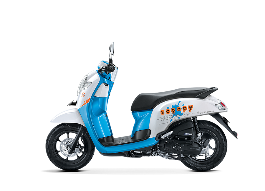 All New Honda Scoopy hadir dengan tetap mempertahankan identitas garis bodi namun kini telah berevolusi dengan tampilan yang lebih trendi dan modern. Lampu depan LED Projector baru terintegrasi dengan lampu sein dengan desain oval yang telah menjadi simbol dari Scoopy selama ini. Tampilan baru ini semakin mempertegas karakter dari tampilan depan Scoopy. Penyematan velg baru 12 inch dengan ban lebih lebar menghadirkan keseimbangan sempurna dengan karakternya yang fashionable. Styling model baru ini semakin lengkap dengan penyematan komponen-komponen baru dan berkualitas tinggi.