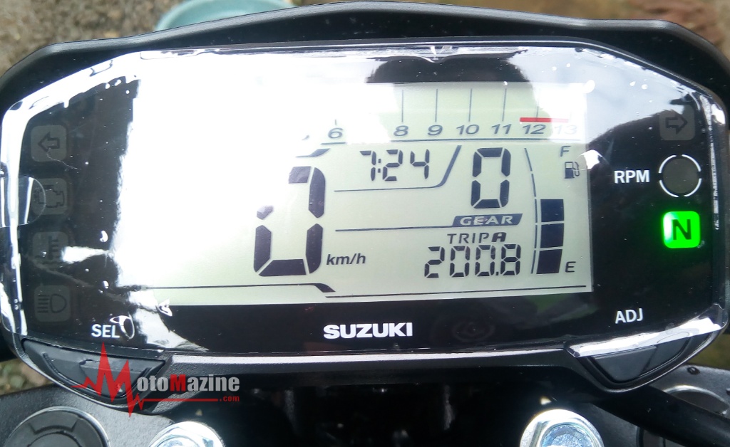 Oh ya, dalam review konsumsi BBM kali ini, MMz memanfaatkan fitur yang sudah tersedia di panel speedometer masgan. Jadi gak pakai metode up to up seperti yang saya lakukan guna mereview konsumsi bensin si GSX-R150 kemarin. Sebelum melakukan perjalanan, odometer pada Trip A MMz atur ulang ke angka 0.0 km. Hal ini dilakukan bukan tanpa alasan masgan.. Selain untuk mengetahui berapa jarak senyatanya yang akan ditempuh, melalui reset ke angka 0.0 km tentu juga akan merubah average fuel consumption ke angka 0 juga. Artinya, pembacaan terhadap konsumsi BBM dari speedometer benar-benar akurat.
