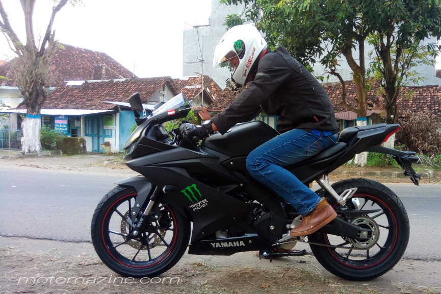 Tadi pagi ketemu rider R15 v3 nganter anaknya sekolah. Ternyata pas ketemu langsung, ganteng nya ini motor bertambah hahaha.. Btw kesan si rider, pegel membungkuk katanya. Yah secara dia sudah 45 tahun keatas sih prediksi ane.