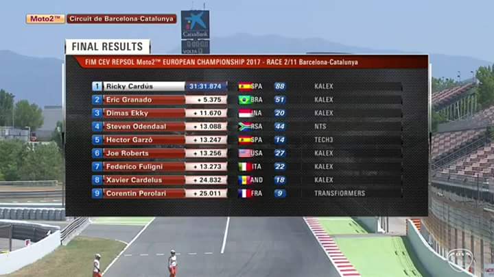 Kembali ke Dimas Ekky, berhasil merebut posisi 3 di sesi kualifikasi memang memberikan keuntungan tersendiri bagi pemuda dengan motor bernomot 20 tersebut. Namun meskipun begitu tak lantas membuat perjuangan Dimas merengkuh podium berjalan dengan mudahnya. Di awal lomba pasca lampu merah dipadamkan Dimas sempat tercecer di urutan ke tujuh dan harus terus berjibaku untuk mendapatkan posisi terbaik. Barulah 2 lap jelang balapan berakhir, posisi Dimas terus membaik hingga mampu meraih podium ke tiga di Race 1 CEV Moto2 Catalunya ini..
