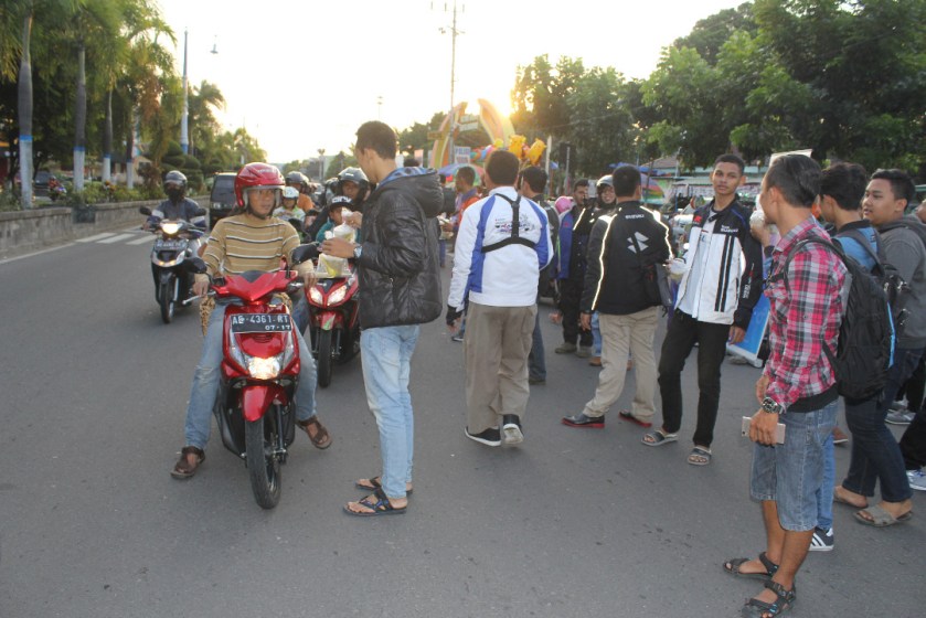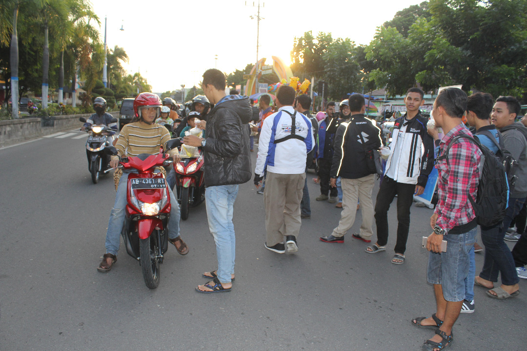 Motomazine.com – Salam safety riding bro sis… Meriah, sukses dan khidmat. Itulah kata-kata yang sekiranya pas untuk menggambarkan suasana petang itu, tepatnya Sabtu (17/6/2017). Bertempat di dealer Suzuki SMG Madiun sebagai tikum sekaligus titik keberangkatan, SUGOI Chapter Madiun berbarengan dengan 86 Production selaku event organizer acara sore itu menggelar Kultur sekaligus bagi takjil dilanjut buka bersama bareng anggota SUGOI.