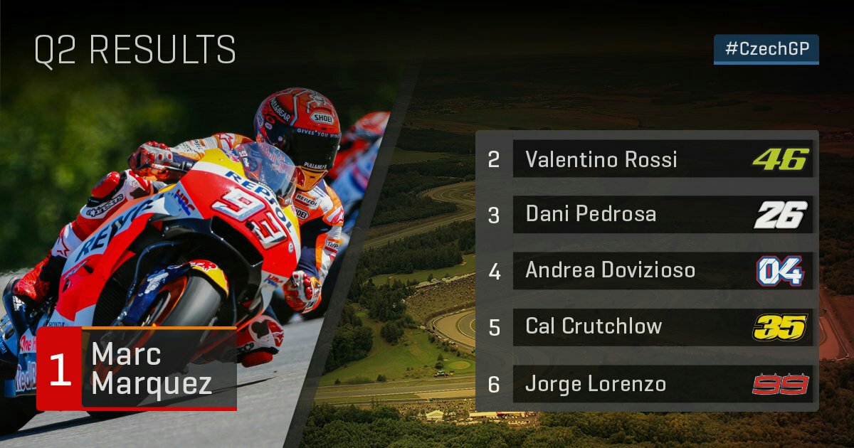 Motomazine.com – Salam safety riding bro sis.. Hasil kualifikasi MotoGP Republik Ceko di sirkuit Brno dimenangi Marquez dengan berhasil merebut posisi pertama disusul Rossi dan Pedrosa. Ketiga pembalap ini memang selalu cepat sejak sesi free practice 3 dan fp4 digelar.