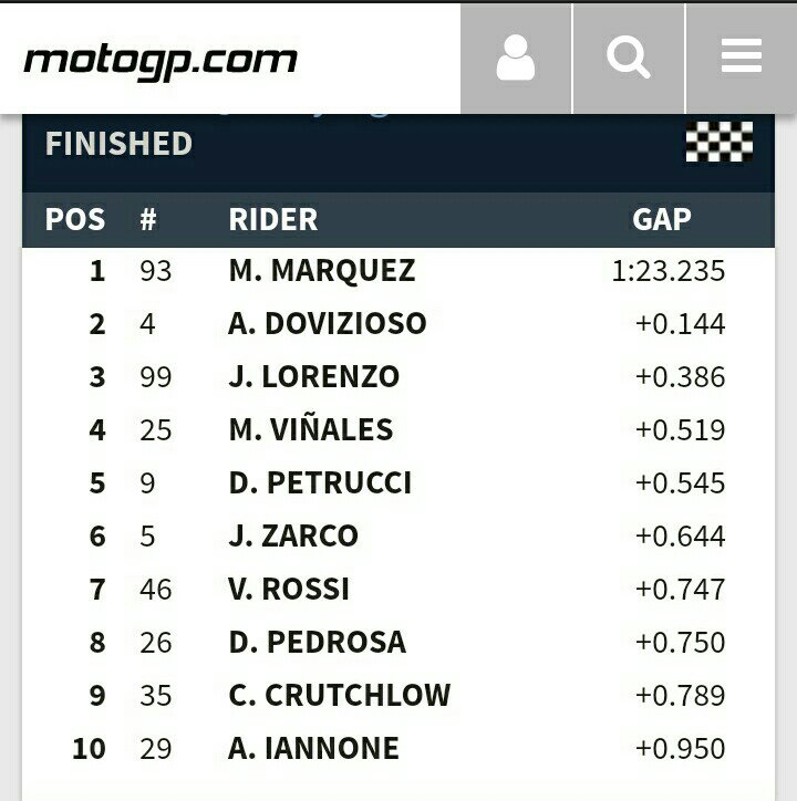 Di sesi kualifikasi 2 (Q2) ini Marquez berhasil mencatatkan waktu di angka 1m23.235 detik. Menyusul di belakangnya Dovisiozo dengan aero fairing radikal Ducati Desmosedici GP17 dengan gap +0.144 detik serta teammate Dovi, si Porfuera yang berada di posisi tiga dengan gap 0.386 detik atas Marquez.