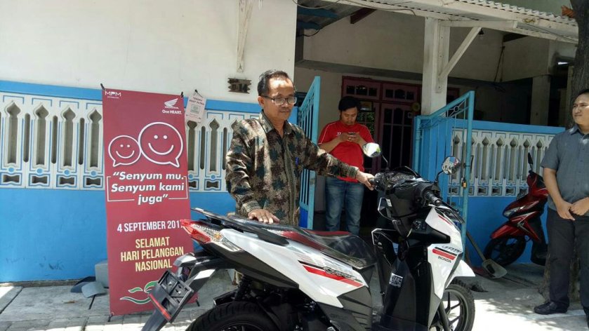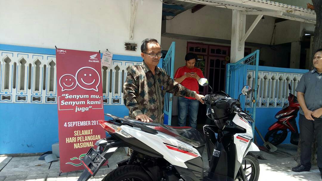 Spesial menyambut Hari Pelanggan, pada tanggal 4 September 2017 Direktur Marketing MPM Dendy Sean T didampingi Honda Customer Care Center (HC3) Division Head MPM M. Bondan Priyoadi secara khusus bersilaturahmi dengan mengunjungi rumah salah satu konsumen setia Honda, Bapak Sapari untuk menyerahkan sepeda motor Honda Vario 125 CBS .Bapak Sapari adalah salah satu konsumen setia Honda dimana dalam satu tahun ini beliau sudah membeli dua sepeda motor Honda di MPM Simpang Dukuh Surabaya.