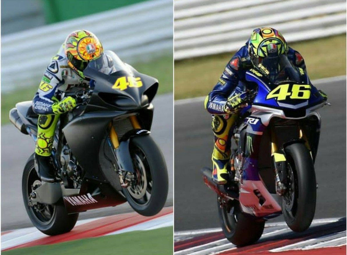 Rossi benar-benar turun di sirkuit Misano mengendarai Yamaha R1. Persis seperti apa yang doi lakukan 7 tahun silam. Persiapan dengan Yamaha R1. Motor yang punya karakter sama dengan Yamaha M1. Sama-sama 4 silinder crossplane crankshaft.