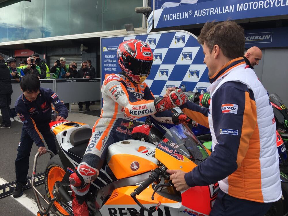 Motomazine.com – Salam safety riding bro sis.. Marc Marquez yang mengawali start terdepan di MotoGP Australia berhasil meraih juara dan mendominasi jalannya balapan. Marc yang tampil kuat di akhir-akhir lap sempat mendapatkan perlawanan ketat dari duo Yamaha, Rossi dan Vinales.