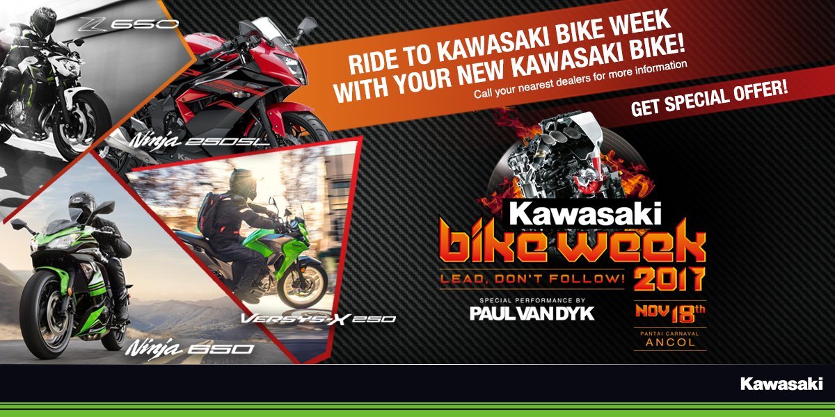Motomazine.com – Salam safety riding bro sis.. Hari ini, Sabtu (18/11/2017) bertempat di pantai Carnaval Ancol akan digelar Kawasaki Bike Week 2017. Acara jambore Kawasaki Riders ini digelar sekaligus sebagai ajang perkenalan produk terbaru pabrikan geng ijo.