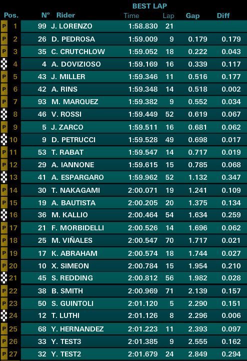 24. ˅1 Tom Luthi SWI EG 0,0 Marc VDS (RC213V)* 2m 1.126s +2.296s [8/52]