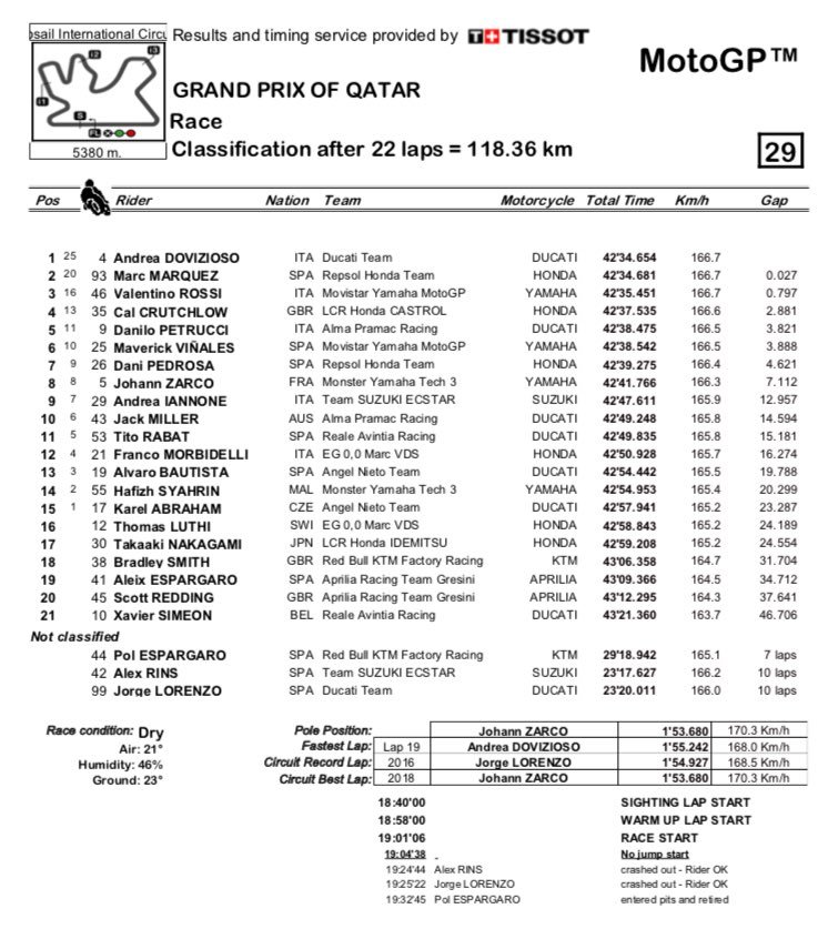 So…selamat buat Dovisiozo, Marquez dan juga Rossi yang berhasil raih podium MotoGP Qatar 2018 ini.. Semoga berguna Cak… (mmz)