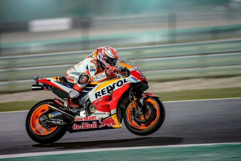 Aksi Marquez di MotoGP Qatar 2018 dengan suspensi depan dan swingarm karbon