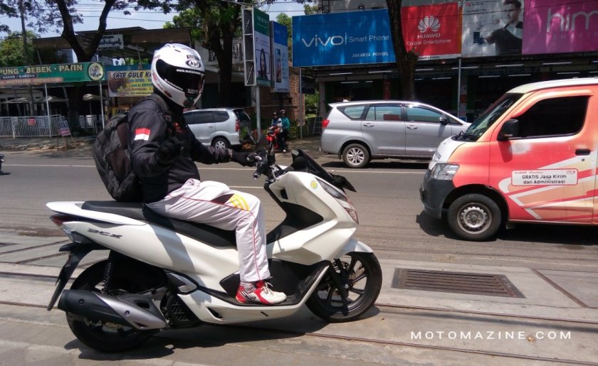 Buat mmz yang berdimensi 1800 mm, nunggang PCX 150 terbaru ini berasa santai. Kaki bisa menapak dengan sempurna dan yang penting lutut gak mentok ke dek depan.