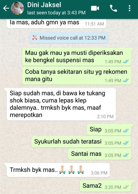 Sadar jika suspensinya bermasalah, bro Dini pun memutuskan untuk pergi ke Ahass Honda terdekat dan memeriksakan suspensi CRF150L nya. Namun jelang beberapa saat kemudian hp saya berdering lagi. Loh mas, kok gak diterima suspensinya sama Ahass?
