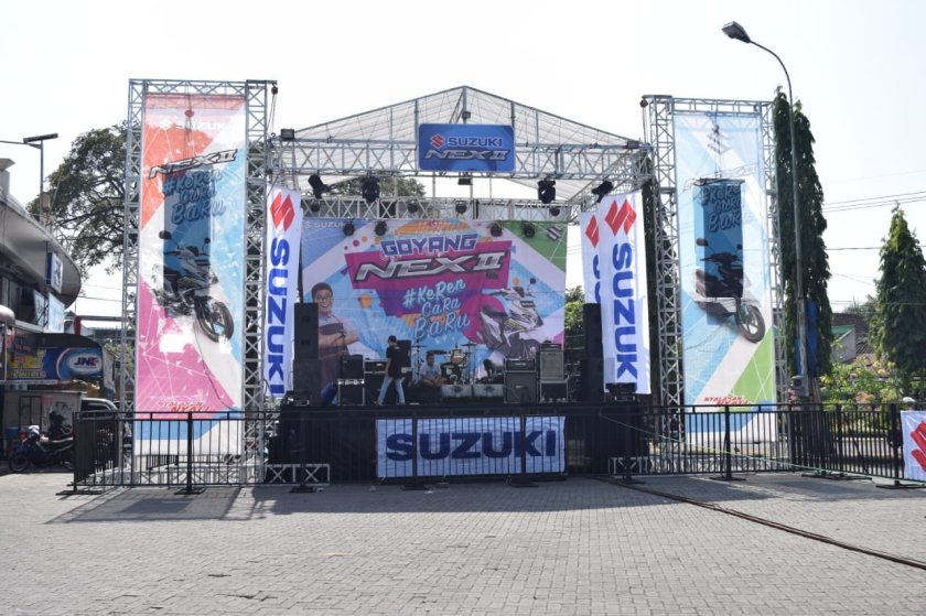 Motomazine.com – Masbro, hari ini Sabtu (14/7/2018) bertempat di stadion Wilis kota Madiun, Suzuki SMG selaku main dealer penjualan Suzuki di area Jatim menggelar sebuah acara bertajuk Goyang NEX II. Yap, promo sekaligus pengenalan Suzuki NEX II ini dilakukan demi terus menggenjot penjualan motor skutik terbaru pabrikan berlogo huruf ‘S’ ini.