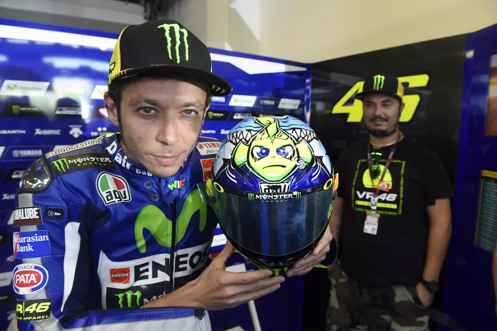 Arti Helm Spesial Valentino Rossi di MotoGP Misano 2015: “Awas Hiu..!!!!”