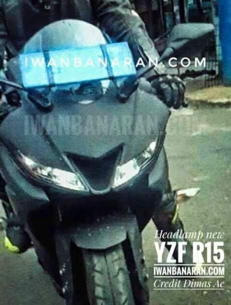 Headlamp Yamaha R15 V3 dengan topeng dan plat nopol di jidat